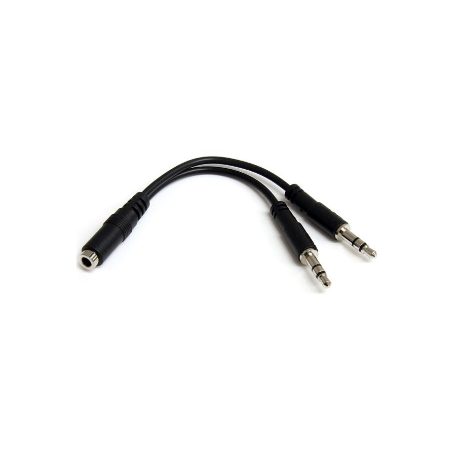 Adaptador Divisor de Auriculares 2x Mini-Jack 3,5mm 3 pines a Mini-Jack 4 pines. Longitud de cable: 0,13 m, Conector 1: 3.5mm, Conector 2: 2 x 3.5mm. Peso: 7 g, Ancho del paquete: 12,5 cm, Profundidad del paquete: 9 cm. Longitud del paquete: 9 cm