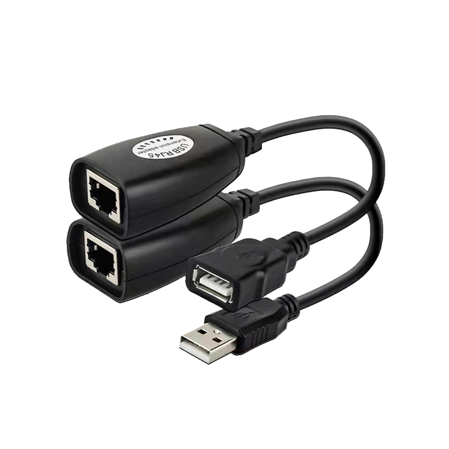 Adaptador extensor de USB por RJ45. No requiere alimentación extra. Su uso es ideal para dispositivos como cámaras USB, impresoras, cámaras web, teclados, extensiones de ratón y cualquier otro dispositivo USB.