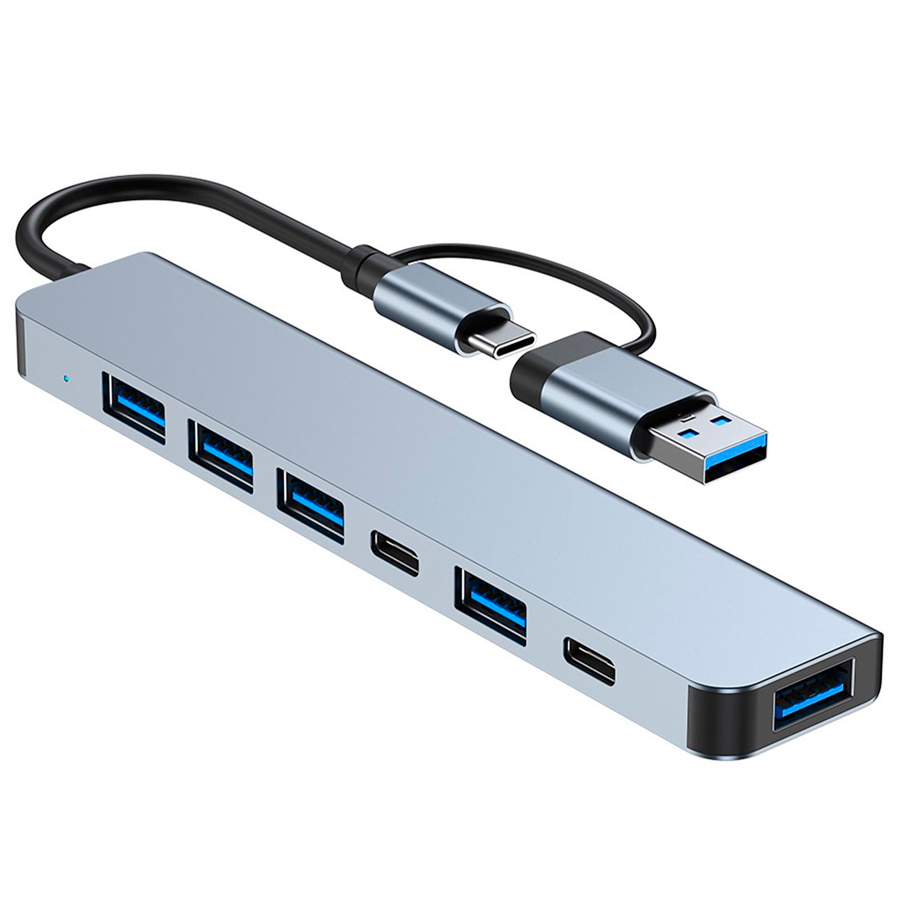 Aluminio 7 en 1 USB C/USB Hub, 2* USB C y 5* USB, USB 3.0 y USB 2.0 Puertos