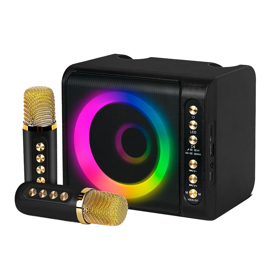 PARLANTE BLUETOOTH MINI KARAOKE T-203 X2 MICROFONOS