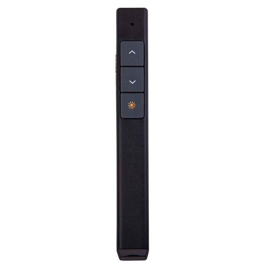 Apuntador láser y controlador para adelantar o atrasar presentaciones digitales, con dispositivo USB remoto para recibir la señal en RF (radio frecuencia).