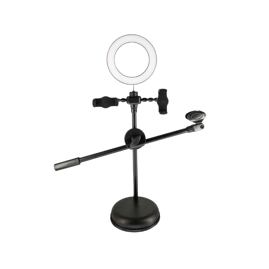 ARO DE LUZ PARA 2 CELULARES + SOPORTE MICROFONO STAND USB KY-216H